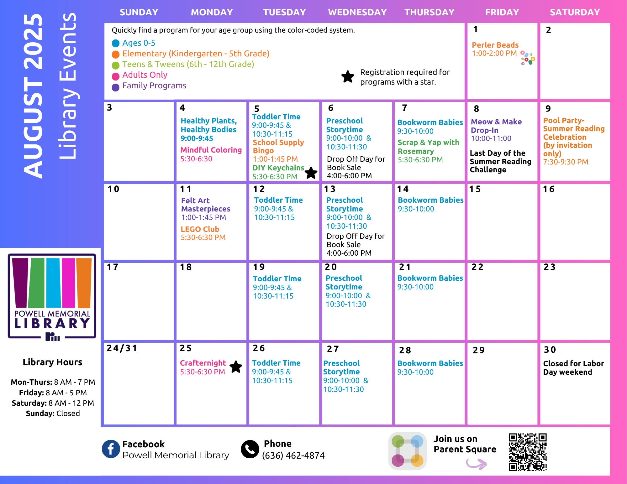 🍂✨ October is packed with fun at Powell Memorial Library! ✨🍂 From spooky crafts to the annual Boo Bash, there’s something for every age this month. Check out our full calendar to plan your visits ...